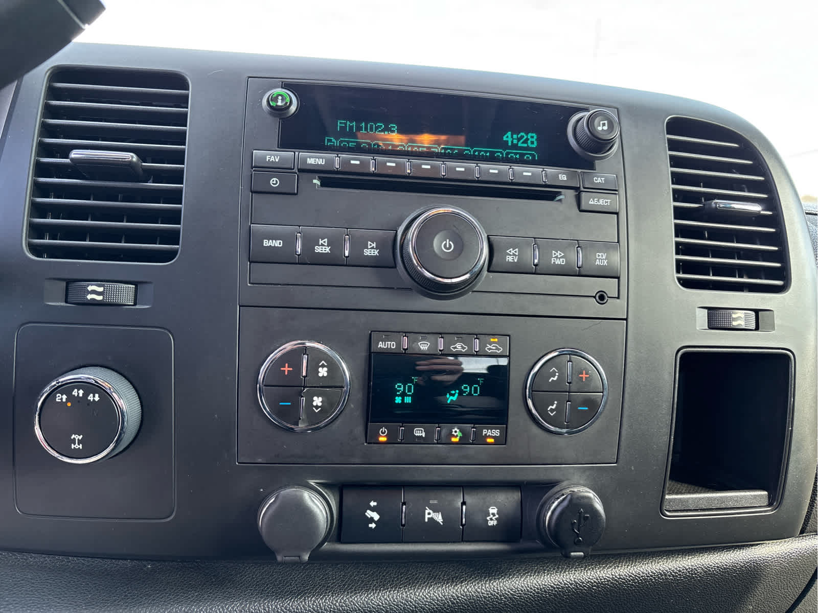 includes (UK3) steering wheel controls, (CJ2) dual-zone automatic air conditioning, (AG1) 6-way power driver seat adjuster, (UPF) Bluetooth® for phone, (UUI) AM/FM stereo with CD player and MP3 playback, (T96) fog lamps, (A60) locking tailgate and (PPA) EZ-Lift tailgate When ordered with combination of (LC8) 6.0L V8 SFI Gaseous CNG (compressed natural gas) engine, with hardened valves and valve seats and (AZ3) front 40/20/40 split-bench seat, (UUI) AM/FM stereo with CD player will not be included.), includes trailering hitch platform and 2.5- inch receiver with 2" adapter, 7-wire harness (harness includes wires for: park lamps, backup lamps, right turn, left turn, electric brake lead, battery and ground) with independent fused trailering circuits mated to a 7-way sealed connector, wiring harness for after-market trailer brake controller (located in the instrument panel harness) and (JL1) integrated trailer brake controller, includes (JF4) adjustable power pedals, (UG1) Universal Home Remote, (AP3) remote vehicle starter system, (UD7) Rear Parking Assist and (C49) rear-window defogger, includes 18" x 8" (45.7 cm x 20.3 cm) steel spare wheel. Spare not included with (ZW9) pickup box delete unless a spare tire is ordered, WINDOW, POWER, REAR SLIDING, includes Remote Keyless Entry with 2 transmitters, panic button and content theft alarm, center fold-down armrest with storage, lockable storage compartment in seat cushion (includes auxiliary power outlet), adjustable outboard head restraints and storage pockets on Extended and Crew Cab models (STD), DIFFERENTIAL, HEAVY-DUTY AUTOMATIC LOCKING REAR, capable of running on unleaded or up to 85% ethanol (360 hp [268.4 kW] @ 5400 rpm, 380 lb-ft of torque [513.0 N-m] @ 4200 rpm) with (E63) wideside pickup box; (322 hp [240.1 kW] @ 4400 rpm, 380 lb-ft of torque [513.0 N-m] @ 4200 rpm) with (ZW9) pickup box delete (STD), with overdrive and tow/haul mode. Includes Cruise Grade Braking and Powertrain Grade Braking (STD), USB port, auxiliary input jack, seek-and-scan, digital clock, auto-tone control, Radio Data System (RDS), automatic volume, TheftLock and 36 cross-band presets.