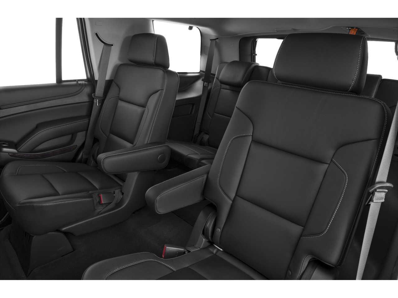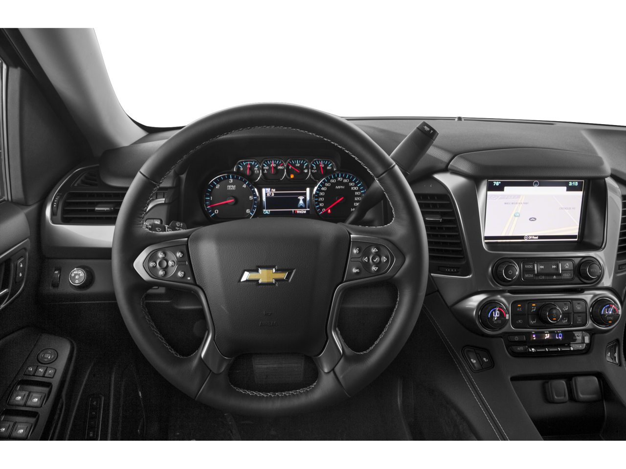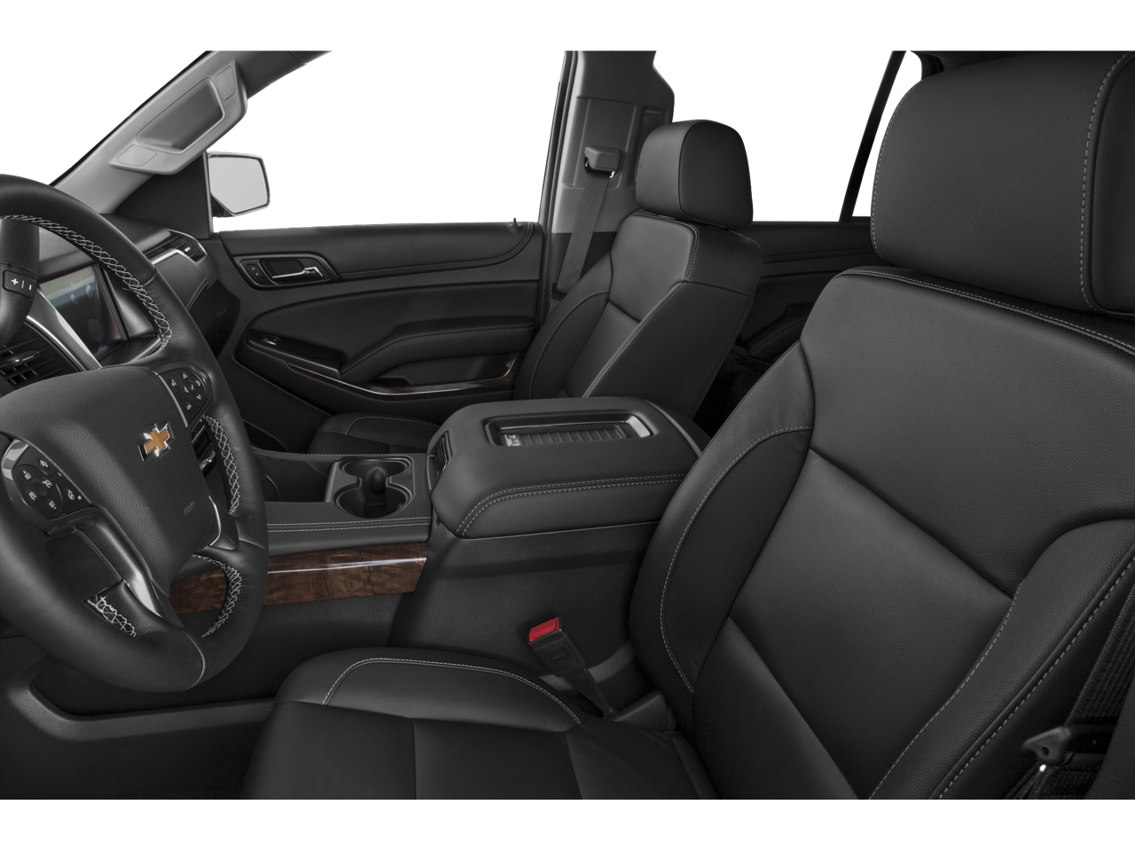 SUN, ENTERTAINMENT AND DESTINATIONS PACKAGE, (CF5) power sunroof, (U42) rear seat DVD entertainment system and (IO6) Chevrolet MyLink radio with navigation, LUXURY PACKAGE includes (AS8) power fold third row 60/40 split bench seats, (ATH) Passive Entry System, (ATT) second row power release 60/40 split folding bench seat, (BTM) keyless start, (DL3) outside heated power-adjustable, power-folding mirrors, (KA6) heated second row seats, (K4C) Wireless charging device, (N38) memory power tilt and telescopic steering column, (TC2) Hands free liftgate, (T3U) fog lamps, (UD5) front and rear parking assist, (UFG) Rear Cross-Traffic Alert, (UKC) Side Blind Zone Alert and (UVD) heated steering wheel and color key rear fascia trailer hitch closeout, BLU-RAY/DVD with remote control, overhead display, two 2-channel wireless infrared headphones and auxiliary audio/video input jacks/SD and USB slots, SEATS, SECOND ROW BUCKET, POWER RELEASE, AUDIO SYSTEM, CHEVROLET MYLINK RADIO WITH NAVIGATION, AM/FM STEREO AND CD PLAYER 5 USB ports, 1 SD card reader and an auxiliary jack, MIRRORS, OUTSIDE HEATED POWER-ADJUSTABLE, POWER-FOLDING AND DRIVER-SIDE AUTO-DIMMING with integrated turn signal indicators and ground illumination, ENGINE, 5.3L ECOTEC3 V8 WITH ACTIVE FUEL MANAGEMENT, DIRECT INJECTION AND VARIABLE VALVE TIMING includes aluminum block construction (355 hp [265 kW] @ 5600 rpm, 383 lb-ft of torque [518 N-m] @ 4100 rpm) (STD), TRANSMISSION, 6-SPEED AUTOMATIC, ELECTRONICALLY CONTROLLED with overdrive and tow/haul mode (STD), STEERING WHEEL, HEATED, LEATHER-WRAPPED AND COLOR-KEYED with theft-deterrent locking feature.