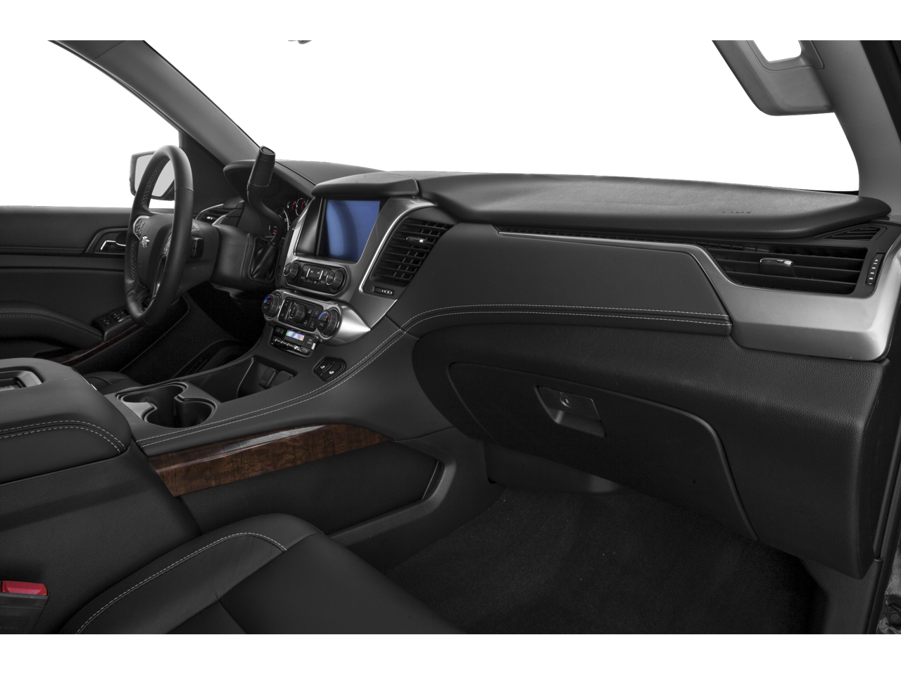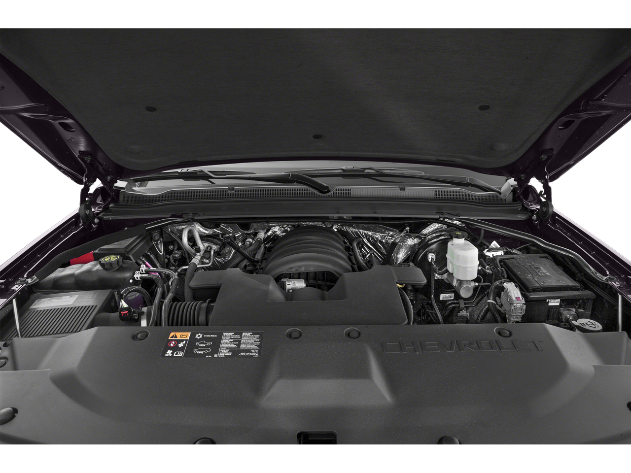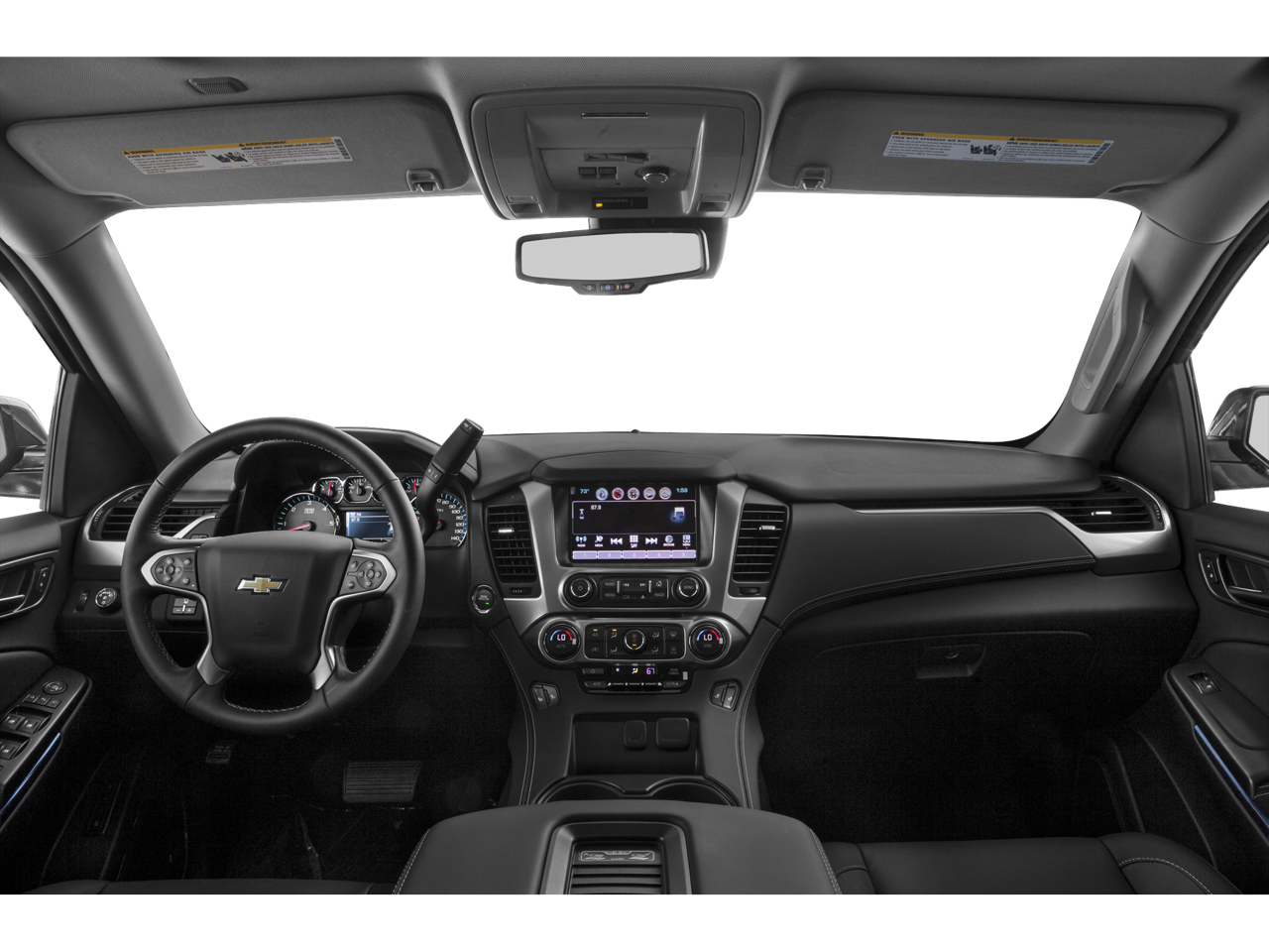 SUN, ENTERTAINMENT AND DESTINATIONS PACKAGE, (CF5) power sunroof, (U42) rear seat DVD entertainment system and (IO6) Chevrolet MyLink radio with navigation, LUXURY PACKAGE includes (AS8) power fold third row 60/40 split bench seats, (ATH) Passive Entry System, (ATT) second row power release 60/40 split folding bench seat, (BTM) keyless start, (DL3) outside heated power-adjustable, power-folding mirrors, (KA6) heated second row seats, (K4C) Wireless charging device, (N38) memory power tilt and telescopic steering column, (TC2) Hands free liftgate, (T3U) fog lamps, (UD5) front and rear parking assist, (UFG) Rear Cross-Traffic Alert, (UKC) Side Blind Zone Alert and (UVD) heated steering wheel and color key rear fascia trailer hitch closeout, BLU-RAY/DVD with remote control, overhead display, two 2-channel wireless infrared headphones and auxiliary audio/video input jacks/SD and USB slots, SEATS, SECOND ROW BUCKET, POWER RELEASE, AUDIO SYSTEM, CHEVROLET MYLINK RADIO WITH NAVIGATION, AM/FM STEREO AND CD PLAYER 5 USB ports, 1 SD card reader and an auxiliary jack, MIRRORS, OUTSIDE HEATED POWER-ADJUSTABLE, POWER-FOLDING AND DRIVER-SIDE AUTO-DIMMING with integrated turn signal indicators and ground illumination, ENGINE, 5.3L ECOTEC3 V8 WITH ACTIVE FUEL MANAGEMENT, DIRECT INJECTION AND VARIABLE VALVE TIMING includes aluminum block construction (355 hp [265 kW] @ 5600 rpm, 383 lb-ft of torque [518 N-m] @ 4100 rpm) (STD), TRANSMISSION, 6-SPEED AUTOMATIC, ELECTRONICALLY CONTROLLED with overdrive and tow/haul mode (STD), STEERING WHEEL, HEATED, LEATHER-WRAPPED AND COLOR-KEYED with theft-deterrent locking feature.