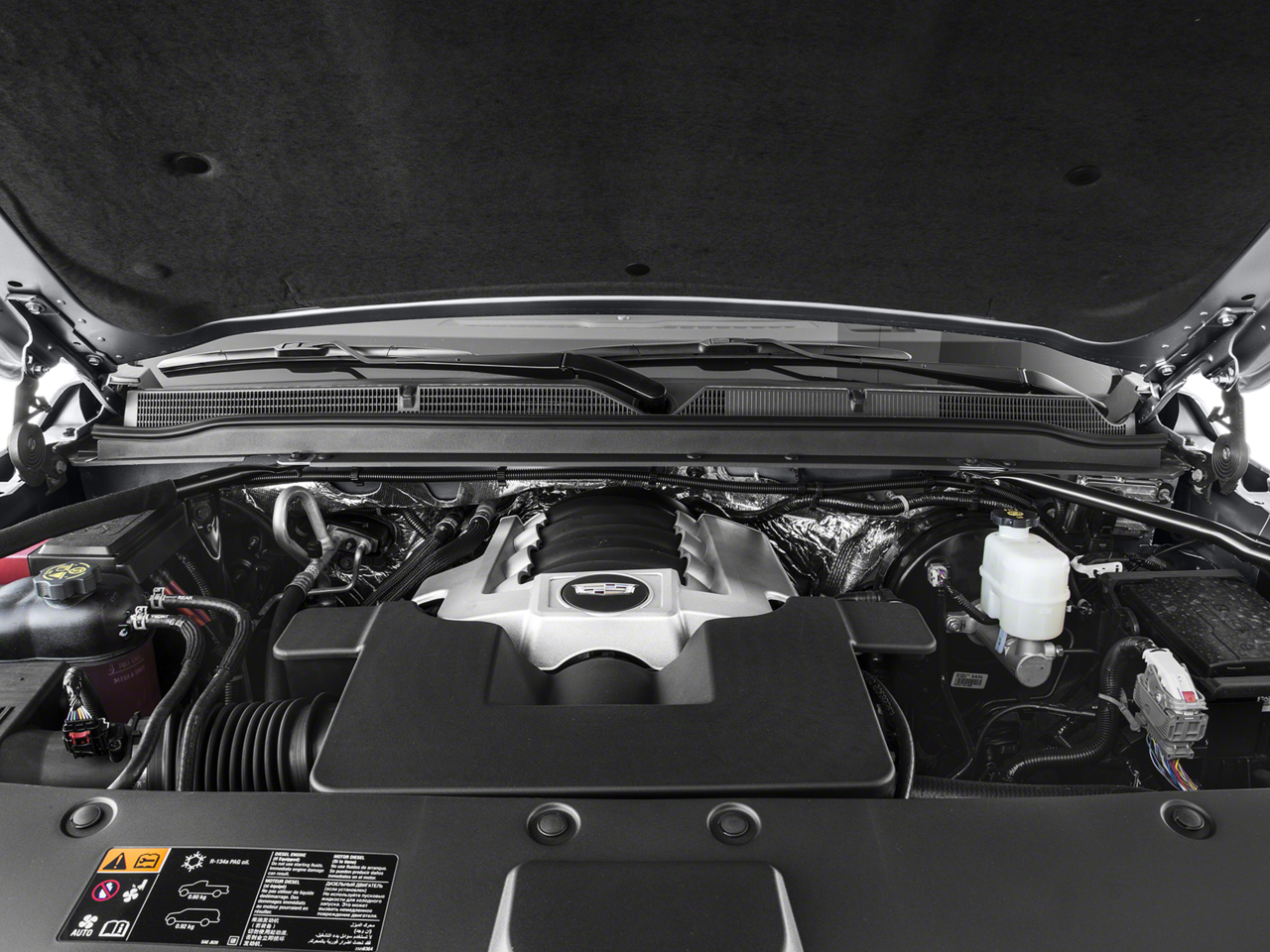 REAR SEAT includes 9" screen DVD player (Blu-Ray capable) with remote control, two 2-channel wireless digital headphones, auxiliary audio/video jacks on rear of center console, sound compression, CD-R and CR-R/W capability, LED backlighting display, MP3 capable, HDMI/HML input, 2nd USB port with 2.1 amp charging and Wi-Fi capability via Digital Living Network Alliance (DLNA), 22" X 9" (55.9 CM X 22.9 CM) DUAL 7-SPOKE ULTRA-BRIGHT FINISH ALUMINUM with premium paint, LPO, INTERIOR PROTECTION PACKAGE includes (VAV) all-weather floor mats, LPO and (VLI) all-weather cargo mat, LPO, CADILLAC CUE INFORMATION AND MEDIA CONTROL SYSTEM WITH EMBEDDED NAVIGATION 8" diagonal color information display featuring touch response, haptic feedback, gesture recognition, Natural Voice Recognition, Phone Integration for Apple CarPlay® and Android Auto® capability for compatible phone, Collection and Teen Driver. Five USB ports, including one in the articulating storage door/bin and auxiliary audio port (STD), ENGINE, 6.2L V8 WITH ACTIVE FUEL MANAGEMENT Spark Ignition Direct Injection (SIDI) and Variable Valve Timing (VVT), includes aluminum block construction (420 hp [313.2 kW] @ 5600 rpm, 460 lb-ft of torque [621 N-m] @ 4100 rpm) (STD), TRANSMISSION, 8-SPEED AUTOMATIC, 8L90 (STD).