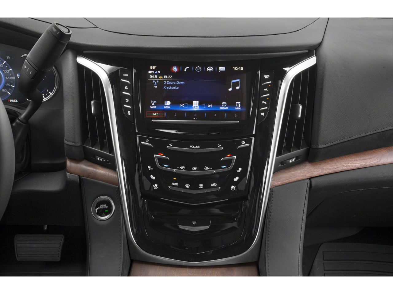 RADIANT PACKAGE includes (SES) 22 Split 7-spoke alloy wheels with Chrome finish, (VAT) Galvano surround grille with silver painted mesh, LPO and (VQZ) Polished exhaust tip, ASSIST STEPS, POWER-RETRACTABLE, RUNNING SIDE BOARD with LED lighting, CADILLAC USER EXPERIENCE WITH EMBEDDED NAVIGATION AM/FM stereo with 8 diagonal color information display featuring touch response, haptic feedback, gesture recognition, Natural Voice Recognition, Phone Integration for Apple CarPlay® and Android Auto® capability for compatible phone, Connected Apps and Teen Driver. Five USB ports, including one in the articulating storage door/bin and auxiliary audio port (STD), ENGINE, 6.2L V8 WITH ACTIVE FUEL MANAGEMENT Spark Ignition Direct Injection (SIDI) and Variable Valve Timing (VVT), includes aluminum block construction (420 hp [313.2 kW] @ 5600 rpm, 460 lb-ft of torque [621 N-m] @ 4100 rpm) (STD), 10-SPEED AUTOMATIC electronically controlled with overdrive, tow/haul mode and tap up/tap down shifting (STD).