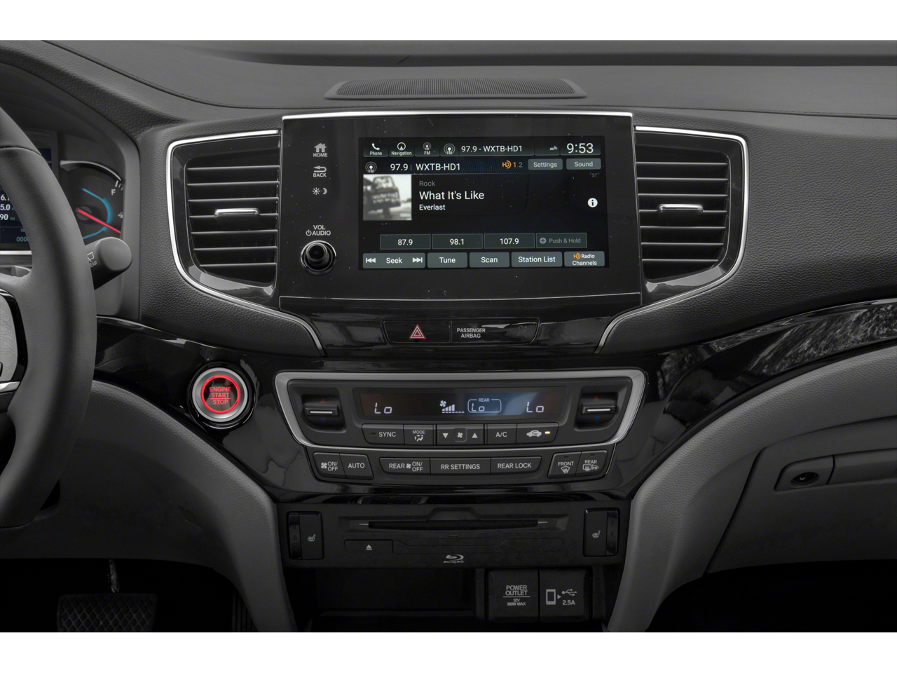 - Radio: 590-Watt Premium Audio System -inc: 10 speakers, subwoofer, 8" display audio w/high-resolution electrostatic touch-screen and customizable feature settings, 2.5-amp USB smartphone/audio interface front console (1 port), Bluetooth® HandsFreeLink, Bluetooth® streaming audio, MP3/auxiliary input jack, Radio Data System (RDS), Speed-Sensitive Volume Compensation (SVC), 2.5-amp USB charging port in center console (1 port) and 2nd row (2 ports), HondaLink, CabinControl remote compatibility, Apple CarPlay integration, Android Auto integration, SMS text message function (Compatible w/select phones w/Bluetooth®, Your wireless carrier's rate plans apply, State or local laws may limit use of texting feature, Only use texting feature when conditions allow you to do so safely.), SiriusXM radio (SiriusXM services require a subscription after any trial period, If you decide to continue your SiriusXM service at the end of your trial subscription, the plan you choose will automatically renew and bill at then-current rates until you call SiriusXM at 1-866-635-2349 to cancel, See our customer agreement for complete terms at www.siriusxm.com, Fees and programming subject to change, XM satellite service is available only to those at least 18 years and older in the 48 contiguous United States and D.C, 2019 Sirius XMRadio Inc, Sirius, XM and all related marks and logos are trademarks of SiriusXM Radio Inc.), HD Radio, CabinTalk in-car PA system through headphones, HondaLink subscription services (HondaLink subscription services come w/complimentary trials of security for 1 year and a remote/concierge trial for 3 months, Enrollment is required to access the remote/concierge trial and to access certain features of security, At the end of each trial period, purchase of a subscription is required to continue the respective services.), Wi-Fi hotspot capability (Requires AT&T data plan.) and multi-zone audio