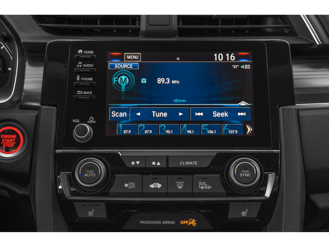 - Radio: 180-Watt AM/FM/HD/SiriusXM Audio System -inc: 8 speakers, 7-inch display w/high-resolution electrostatic touch-screen, knob and hard keys for primary controls, customizable feature settings, Bluetooth® HandsFreeLink, Bluetooth® streaming audio, radio data system (RDS), speed-sensitive volume compensation (SVC), 1.5-amp USB smartphone/audio interface in front console, 1.0-amp USB audio interface port in center console, HondaLink, Apple CarPlay integration, Android Auto integration, SMS text message function, fin-type roof-mounted antenna and illuminated steering wheel-mounted controls