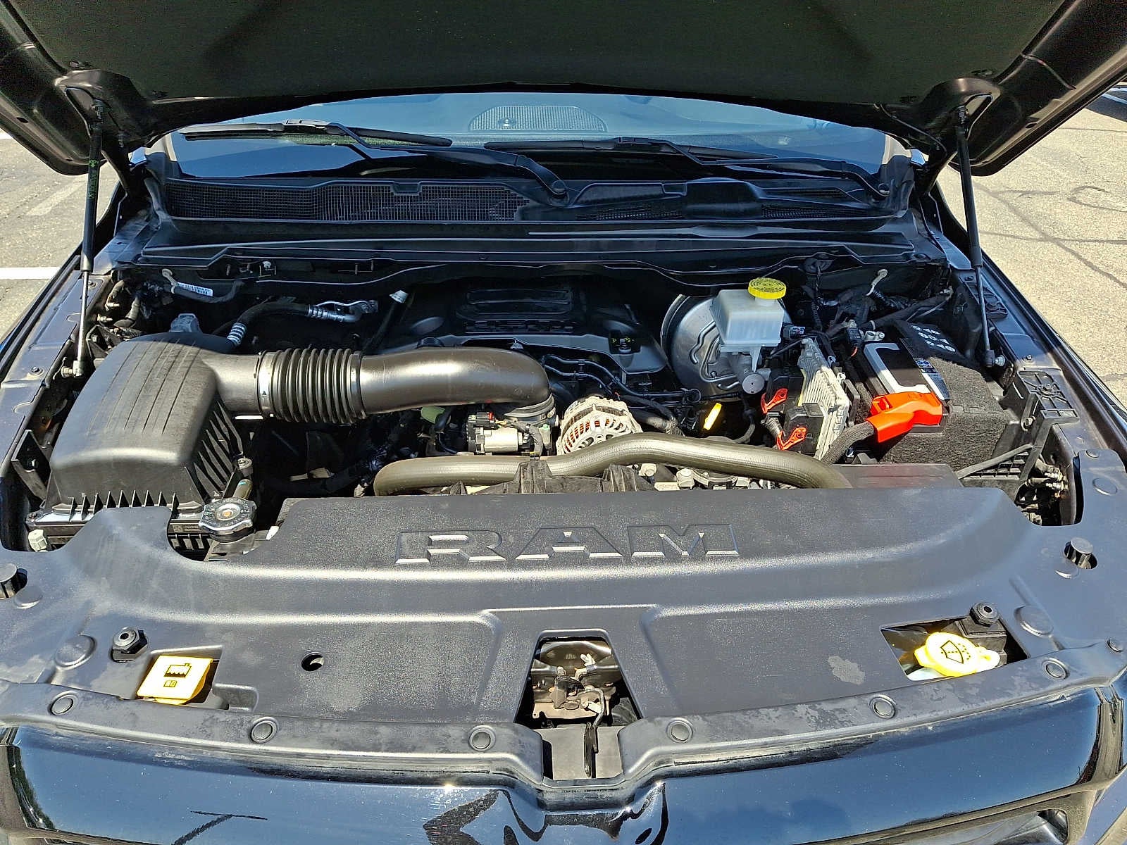 SiriusXM Radio Service, Rear Window Defroster, ParkSense Front/Rear Park Assist w/Stop, Rear View Auto Dim Mirror, Power Adjustable Pedals, For More Info, Call 800-643-2112, Rear Power Sliding Window, Rear Dome w/On/Off Switch Lamp, Glove Box Lamp, Power 4-Way Driver Lumbar Adjust, 115V Auxiliary Rear Power Outlet, Media Hub w/2 Charge Only USBs, Power 8-Way Driver Seat, Auto Dim Exterior Driver Mirror, Heated Front Seats, Heated Steering Wheel, Foam Bottle Insert (Door Trim Panel), Class IV Receiver Hitch, Security Alarm, Black Premium Power Mirrors, Big Horn IP Badge, Remote Start System, SiriusXM Satellite Radio, Exterior Mirrors w/Supplemental Signals, Exterior Mirrors Courtesy Lamps, Air Conditioning ATC w/Dual Zone Control, 115V Auxiliary Power Outlet, 400W Inverter, Cluster 7.0 TFT, Active Noise Control System, 180 Amp Alternator, Heavy Duty Engine Cooling, GVWR: 7,100 lbs, Dual Rear Exhaust w/Bright Tips, HEMI Badge, Tires: 275/55R20 OWL All Season, Accent Color Premium Power Mirrors, Exterior Mirrors w/Supplemental Signals, Black Headlamp Bezels, Exterior Mirrors Courtesy Lamps, Auto Dim Exterior Driver Mirror, Black Exterior Truck Badging, Anti-Spin Differential Rear Axle, Wheels: 20 x 9.0 Premium Paint/Polished, Exterior Mirrors w/Memory, Black Interior Accents, Dual Exhaust w/Black Tips, Power-Folding Mirrors, Body Color Front Bumper, Body Color Rear Bumper w/Step Pads, Black Painted Exterior Mirrors Caps, MOPAR Spray In Bedliner, MOPAR 4 Adjustable Cargo Tie-Down Hooks, Pick-Up Box Lighting, MOPAR Deployable Bed Step, REMOTE START SYSTEM, Power 8-Way Driver Seat, Center Console Parts Module, Bucket Seats, Manual Adjust 4-Way Front Passenger Seat, Full Length Floor Console, Power 4-Way Driver Lumbar Adjust, RADIO: UCONNECT 4 W/8.4 DISPLAY.