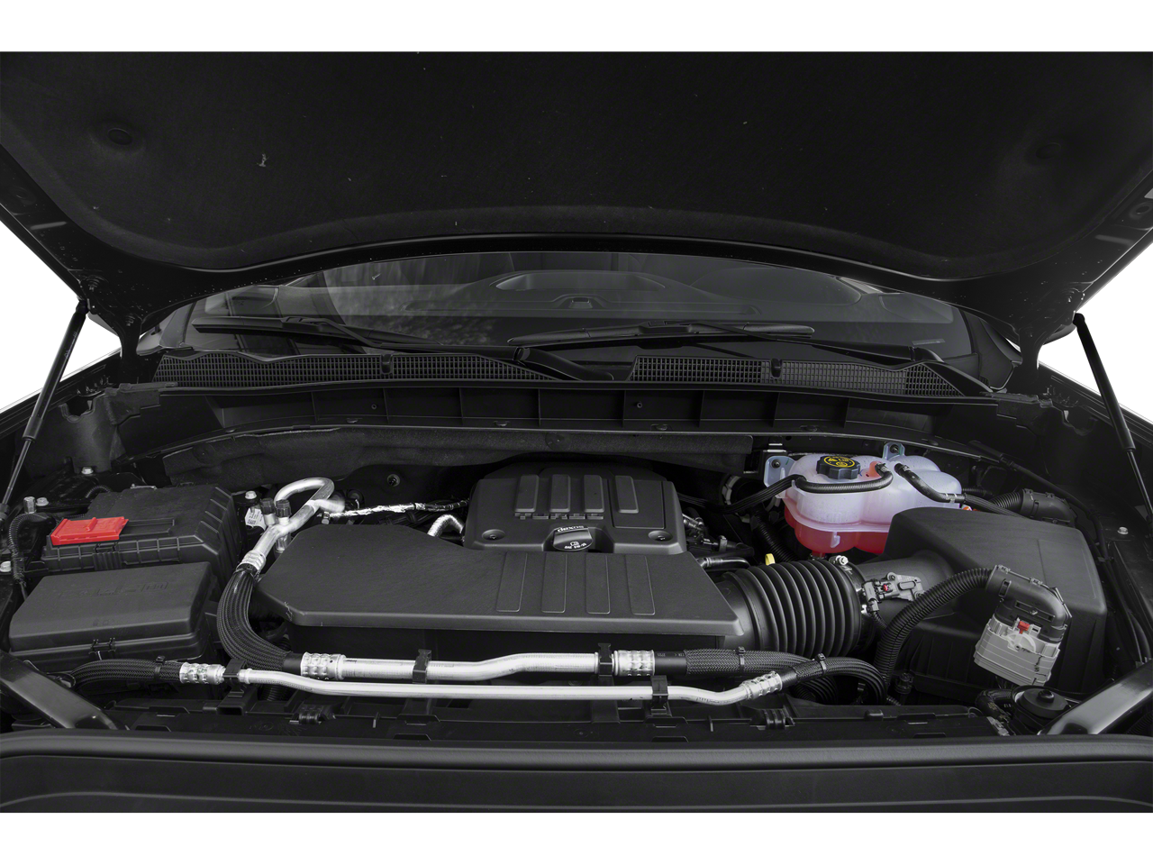 FRONT BUCKET with center console (Includes (D07) center console.), AUDIO SYSTEM, GMC INFOTAINMENT SYSTEM WITH 8" DIAGONAL COLOR TOUCH-SCREEN, AM/FM STEREO with seek-and-scan and digital clock, includes Bluetooth® streaming audio for music and select phones; featuring wired Android Auto® and Apple CarPlay® capability for compatible phones (STD), 2.7L TURBO (310 hp [231 kW] @ 5600 rpm, 348 lb-ft of torque [471 Nm] @ 1500 rpm) (Includes (KW5) 220-amp alternator and (MQE) 8-speed automatic transmission. (STD), ELECTRONICALLY CONTROLLED with overdrive and tow/haul mode. Includes Cruise Grade Braking and Powertrain Grade Braking (STD).