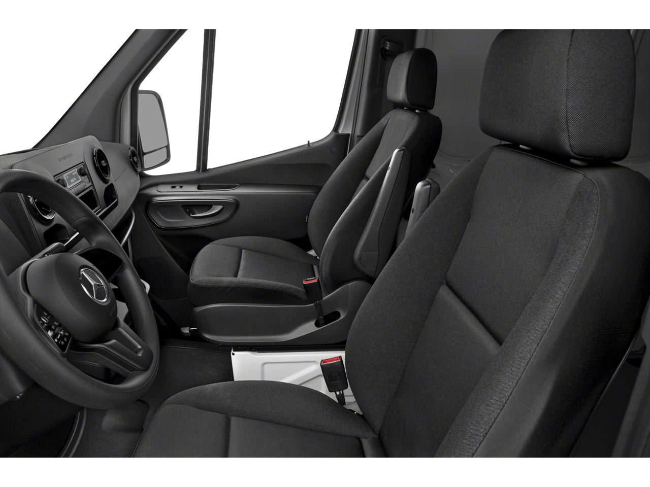 Third Passenger Door, Keyless Entry, Steering Wheel Controls, Heated Mirrors. Mercedes-Benz Sprinter Cargo Van with Arctic White exterior and Black interior features a V6 Cylinder Engine with 188 HP at 3800 RPM*.