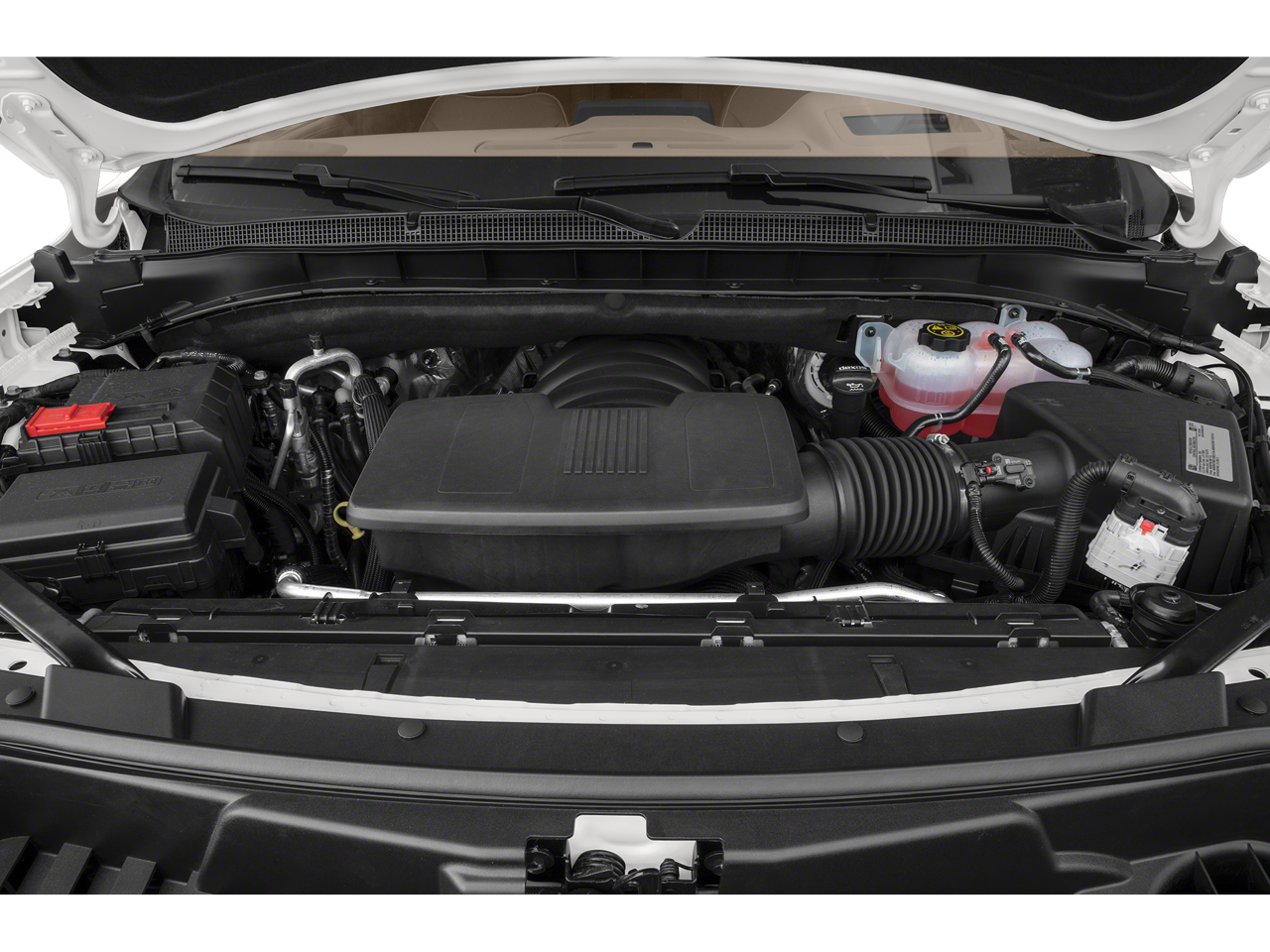 with express-open and close and power sunshade, 10.2 diagonal HD color touchscreen, includes multi-touch display, AM/FM stereo, Bluetooth® streaming audio for music and most phones; featuring wireless Android Auto® and Apple CarPlay® capability for compatible phones, advanced voice recognition, in-vehicle apps, personalized profiles for infotainment and vehicle settings (STD), with Dynamic Fuel Management, Direct Injection and Variable Valve Timing, includes aluminum block construction (355 hp [265 kW] @ 5600 rpm, 383 lb-ft of torque [518 Nm] @ 4100 rpm) (STD), electronically controlled with overdrive, includes Traction Select System including tow/haul (Standard with (L84) 5.3L EcoTec3 V8 engine only or (L87) 6.2L EcoTec3 V8 engine only.) (STD).