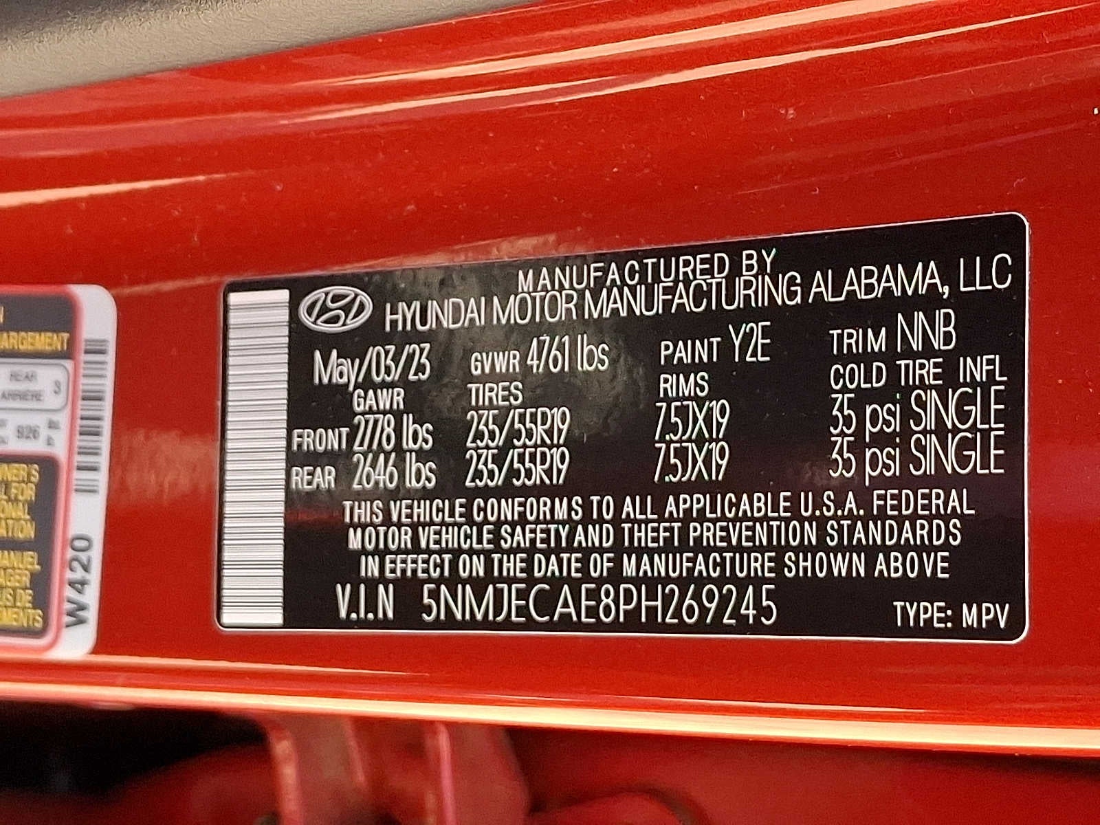 - Front Tire Size: P235/55HR19