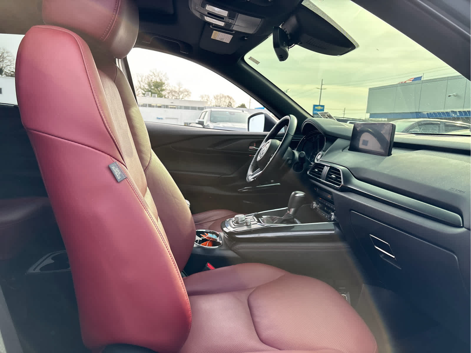 Leather Seats, Sunroof Mazda CX-9 Carbon Edition with Polymetal Gray Metallic exterior and Red interior features a 4 Cylinder Engine with 227 HP at 5000 RPM*.