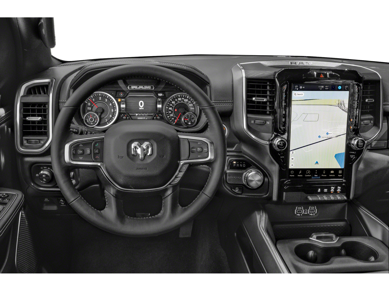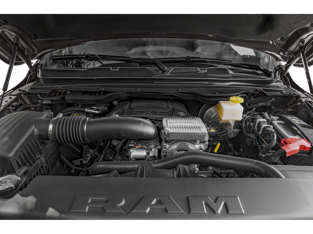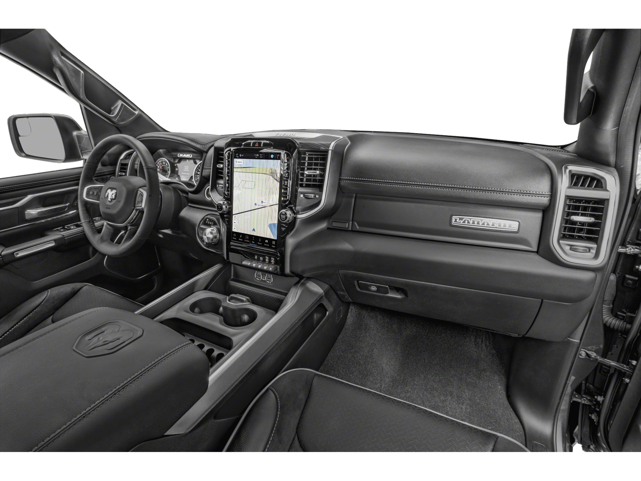 ENGINE: 5.7L V8 HEMI MDS VVT ETORQUE Active Noise Control System, Heavy Duty Engine Cooling, Passive Tuned Mass Damper, GVWR: 7,100 lbs, Dual Rear Exhaust w/Bright Tips, HEMI Badge, 23 Gallon Fuel Tank, 18 Aluminum Spare Wheel, LARAMIE LEVEL 1 EQUIPMENT GROUP Rear Window Defroster, Blind Spot & Cross Path Detection, Rain Sensitive Windshield Wipers, ParkSense Front/Rear Park Assist w/Stop, Rear Power Sliding Window, 12 Touchscreen Display, Front LED Fog Lamps, LED Reflector Headlamps, Foam Bottle Insert (Door Trim Panel), Radio: Uconnect 5 Nav w/12.0 Display, Remote Tailgate Release, Auto High Beam Headlamp Control, Electric Shift On Demand Transfer Case, Front Door Accent Lighting, 2nd Row In Floor Storage Bins, Rear Door Accent Lighting, SPORT APPEARANCE PACKAGE Tires: 275/55R20 OWL All Season, Body Color Premium Power Mirrors, Sport Performance Hood, Sport Decal, Wheels: 20 x 9 Premium Painted w/Inserts, Body Color Exterior Mirrors, Black Interior Accents, Body Color Front Bumper, Body Color Rear Bumper w/Step Pads, Grille Surround 3 Body Color Tex 2 Black, BLACK, LEATHER TRIMMED BUCKET SEATS Bucket Seats, Center Console Parts Module, Full Length Upgraded Floor Console, CLASS IV RECEIVER HITCH, TRANSMISSION: 8-SPEED AUTOMATIC (8HP75).