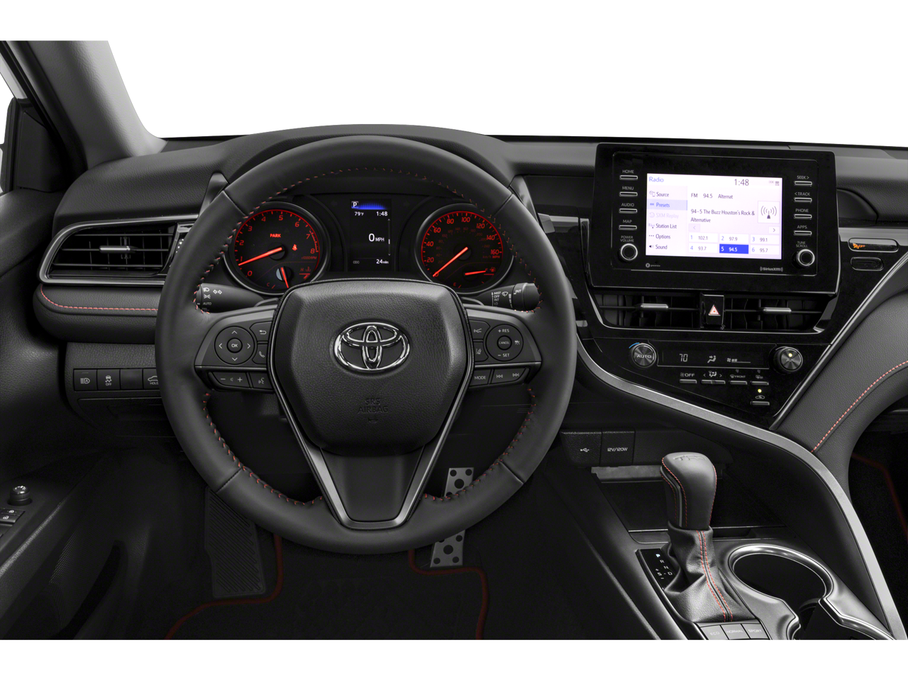 TRD PACKAGE W/JBL AUDIO Radio: Audio Plus w/JBL, 9 touch-screen, 9 speakers including subwoofer and amplifier, USB media port, USB charge port, hands-free phone capability and music streaming via Bluetooth® wireless technology, Android Auto® and Apple CarPlay® and Amazon Alexa compatible, SiriusXM w/3-month All Access trial and Connected Services (Safety Connect, Service Connect w/10-year trial, Remote Connect and Wi-Fi Connect w/up to 2 GB within 3-month trial), TWO-TONE EXTERIOR COLOR midnight black metallic roof and rear spoiler and black window trim and side-view mirror caps.