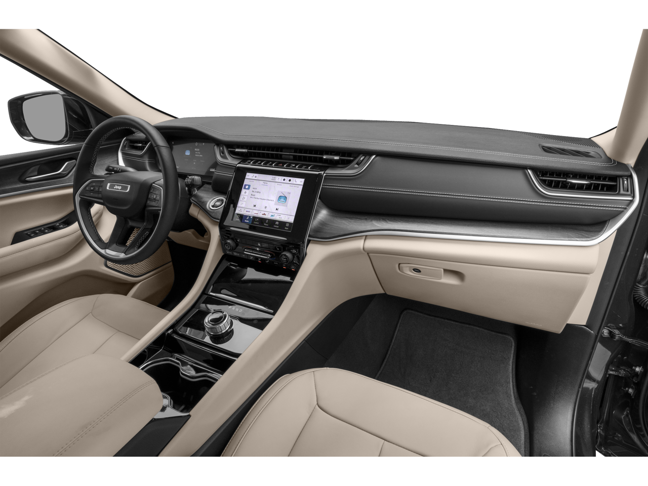 Navigation Jeep Limited with Bright White Clearcoat exterior and Wicker Beige/Black interior features a V6 Cylinder Engine with 293 HP at 6400 RPM*.